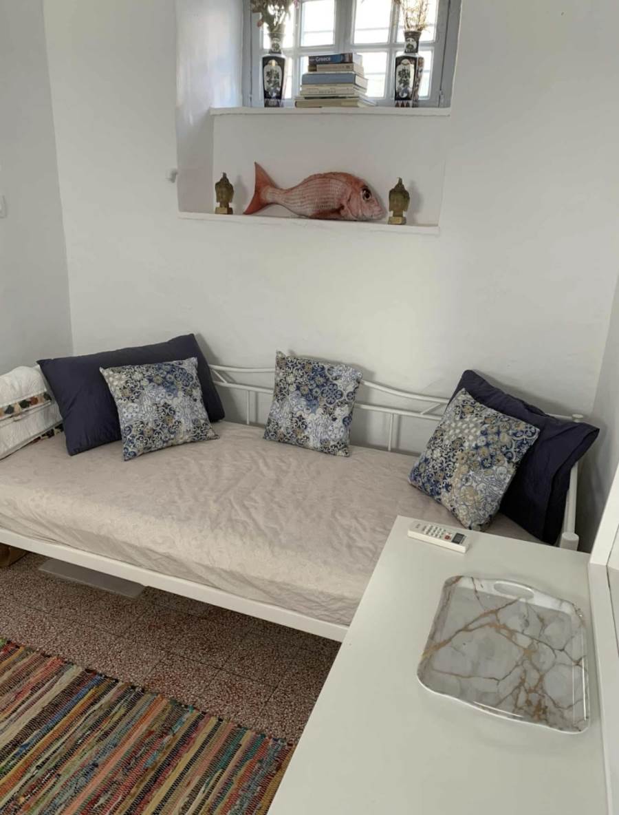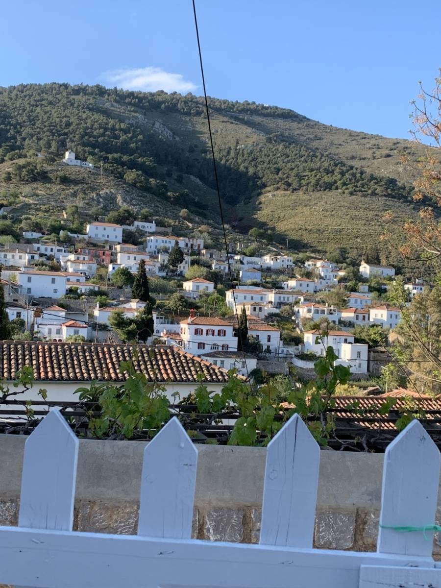 A beautifully renovated two-level Hydra home in the peaceful area of Agios Antonios, close to Avlaki and with mountain views.